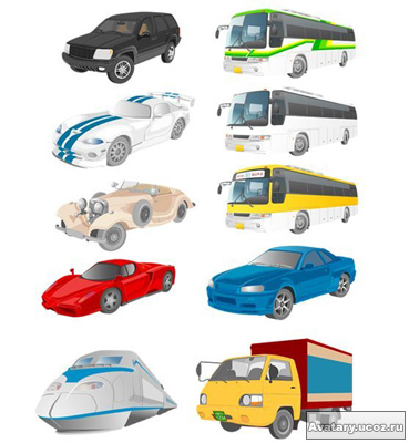 Качественные изображения автомобилей и другой техники в векторном AI формате. Размер архива: 1,59 mb